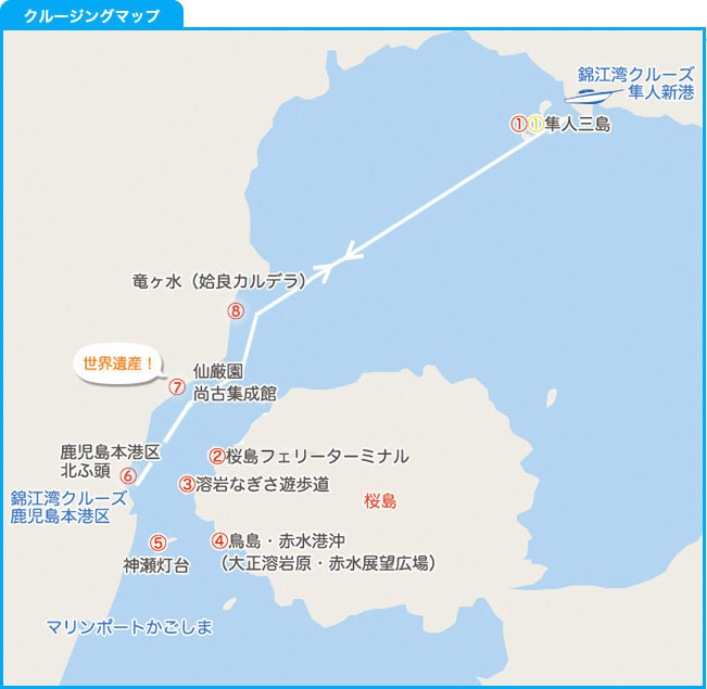 - 隼人新港 13:10発(集合13:00) → ①⑧⑦ → 鹿児島本港区北ふ頭14:00着